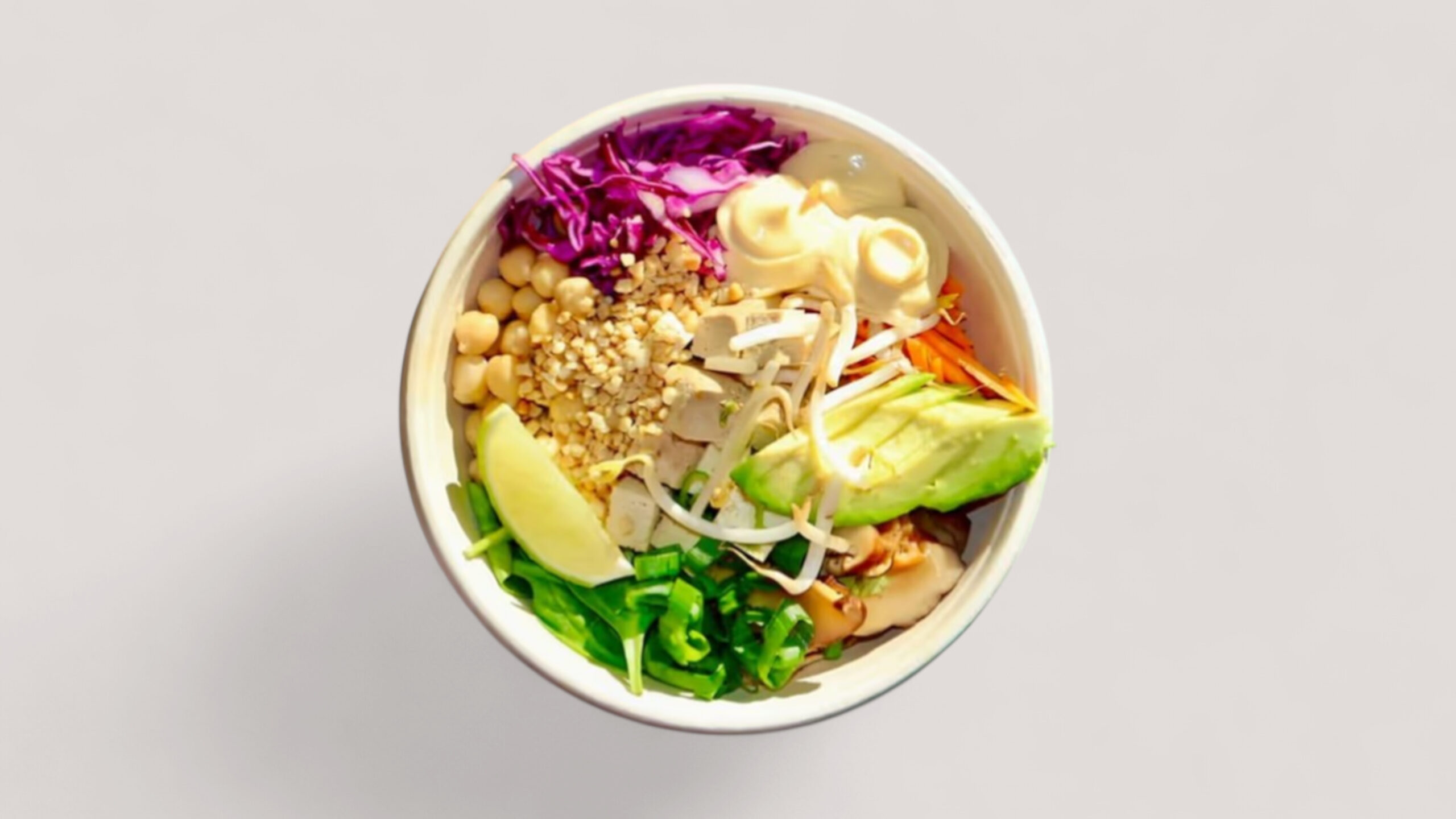 tofu, bébispenót, lilakáposzta, sargarépa, avokádó, újhagyma, törtmogyoró, mungó, teriyaki, japán majonéz